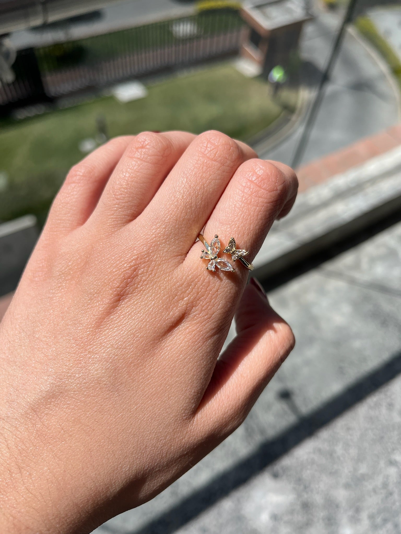 Anillo dorado de mariposa doble.